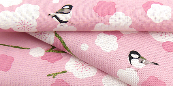 白梅に可愛い四十雀の柄。