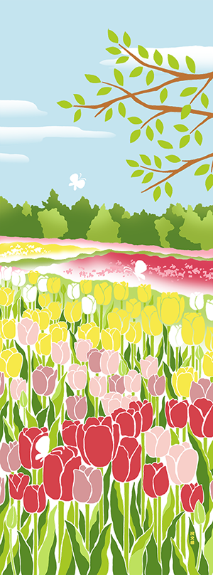 『絵てぬぐい チューリップ畑』
