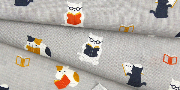 読書の時間も、猫は自由気ままです。 【濱文様のてぬぐい】