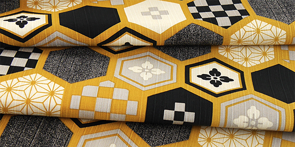 市松・麻の葉・花菱をあしらったモダンな幾何柄です。