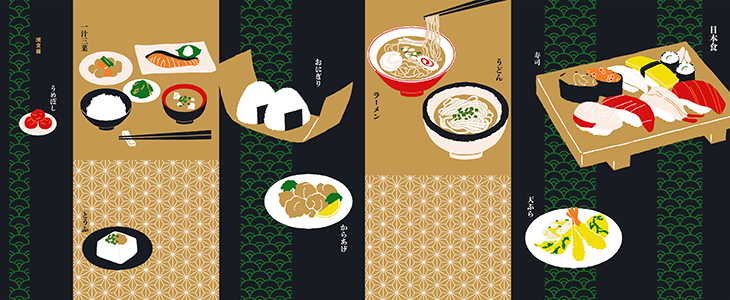 海外の方たちにも人気の日本食を描きました。