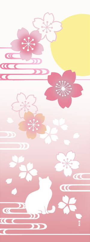 『絵てぬぐい 大桜と夢恋ねこ』