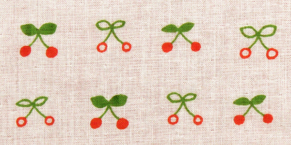 手描きのゆるいタッチが可愛らしいさくらんぼ柄。
